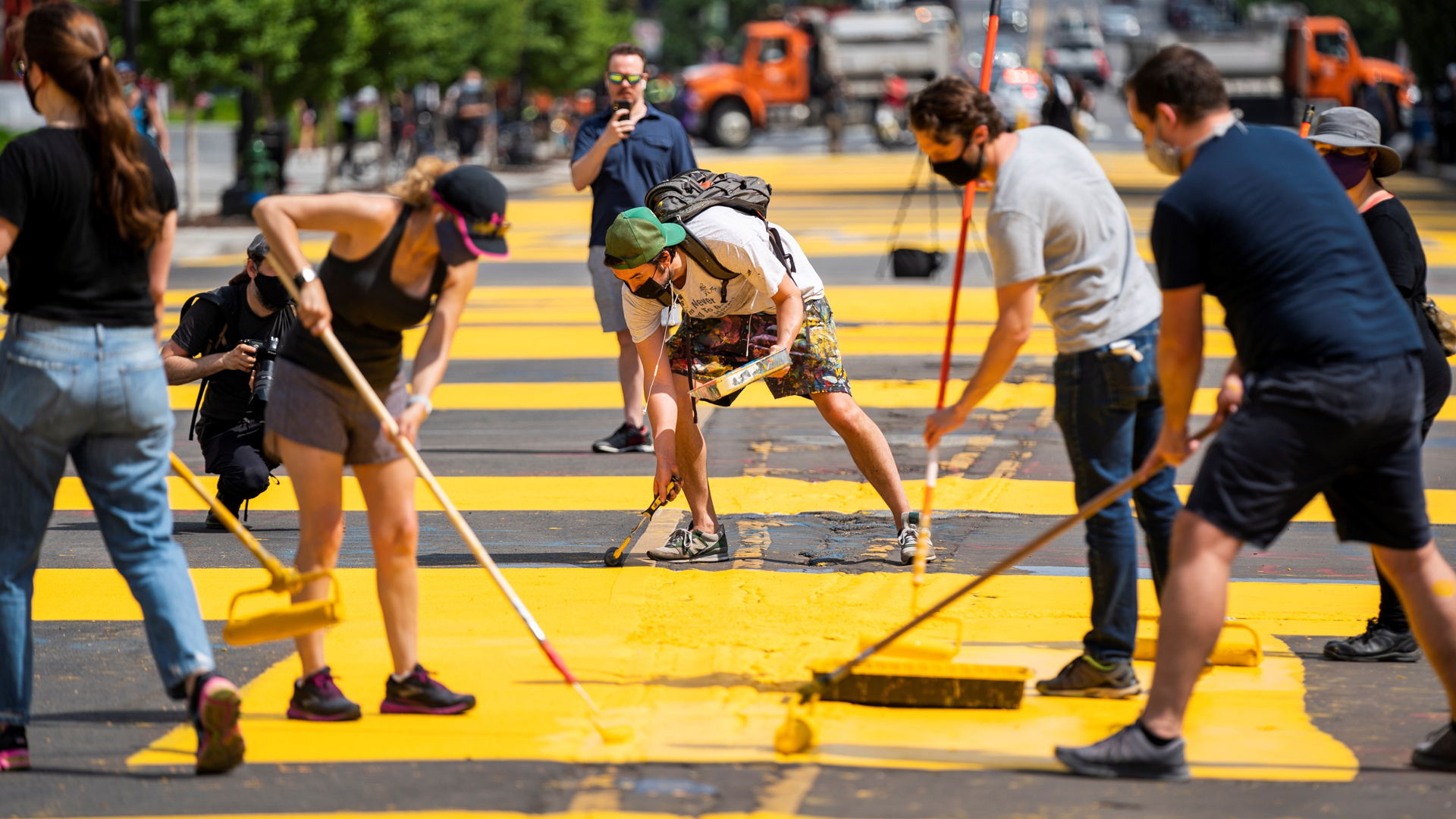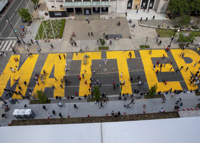 A través de fotografías monumentales Jr trabaja utilizando el espacio público.